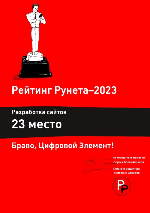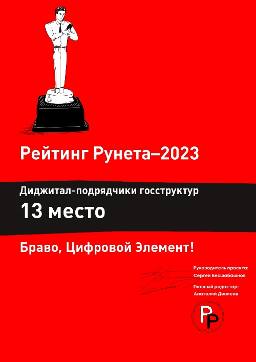 16 мая 2023 подведены итоги одного из самых крупных конкурсов в сфере IT для digital-агентств. Компания «Цифровой Элемент», как и в прошлые годы, оказалась в топе рейтингов и занимает лидирующие позиции во многих номинациях.